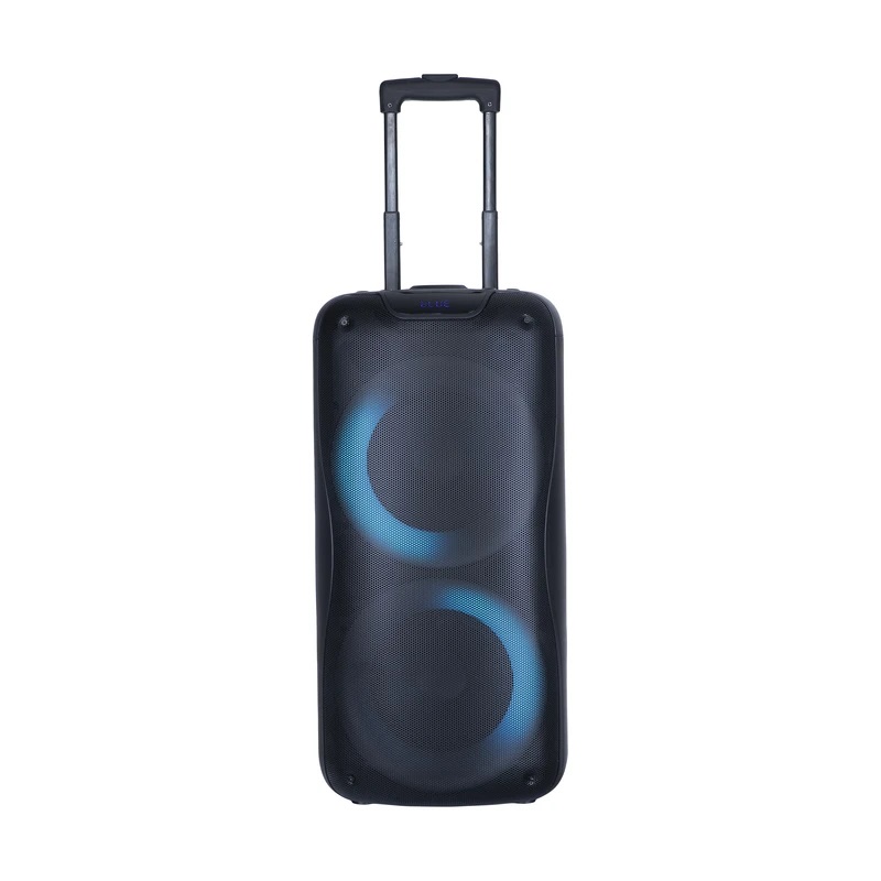 باتری قدرتمند ۷۵۰۰ میلیآمپر ساعتی تا ۶ ساعت پخش مداوم رو تضمین میکنه و طراحی چمدانی با دستهی تلسکوپی و چرخدار، حملونقل رو راحت کرده. همراه با اسپیکر، یک میکروفن بیسیم، ریموت کنترل و کابل AUX هم ارائه میشه.