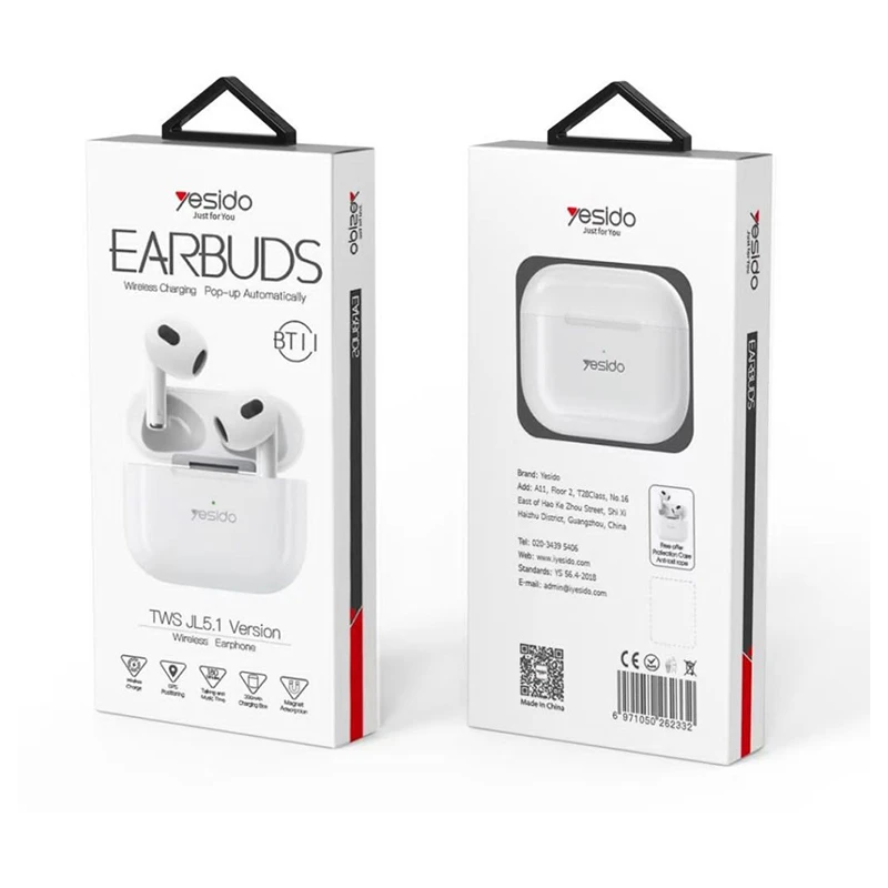 ایرپاد بلوتوثی Yesido BT11 با طراحی دوگوشی نیمه داخلگوشی، تجربهای راحت برای تماس و موسیقی فراهم میکنه. این مدل از بلوتوث نسخه 5.1 بهره میبره که اتصال پایدار و سریع به گوشیهای اندروید و iOS رو تضمین میکنه. بدنه از پلاستیک ABS مقاوم در برابر ضربه ساخته شده و کیس شارژ جمعوجور اون، حملونقل رو آسون کرده. کیفیت صدای استریو، میکروفون داخلی برای تماس، و کنترل لمسی از امکانات کاربردی این مدله. طراحی اون کاملاً شبیه سری ۳ ایرپاد اپله و برای استفاده روزمره، تماسهای تلفنی و گوشدادن به موسیقی گزینه مناسبیه.