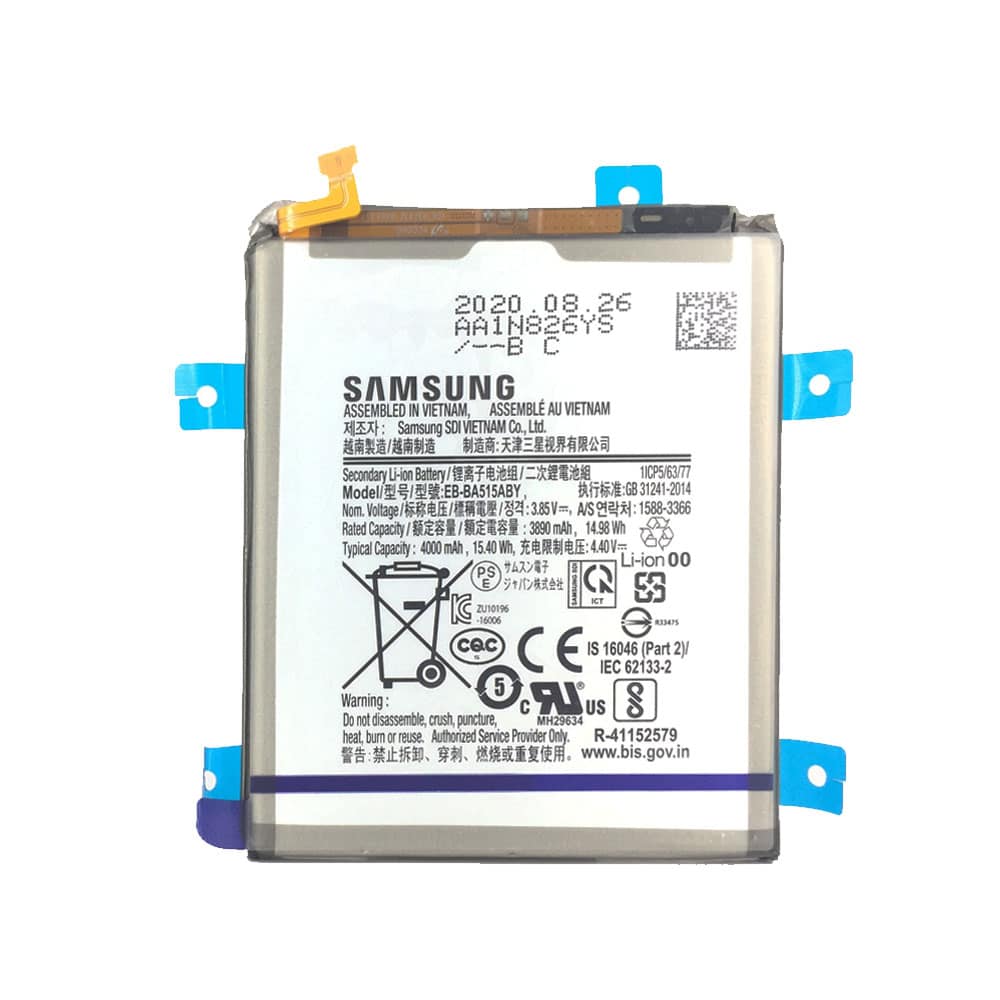 باتری سامسونگ A51 مدل EB-BA515ABY با ظرفیت ۴۰۰۰ میلی‌آمپر ساعت و فناوری لیتیوم-پلیمری، شارژدهی مناسب و عملکرد پایدار رو برات تضمین می‌کنه مخصوص استفاده روزمره، تماس‌های طولانی و پخش ویدیو.