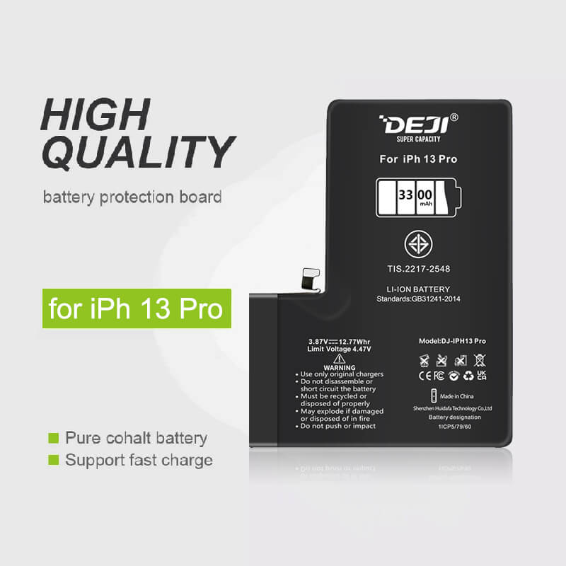 این باتری با ظرفیت واقعی ۳٬۰۹۵ میلیآمپر ساعت و ولتاژ ۳.۸۵ ولت، مخصوص آیفون 13 پرو طراحی شده و از سلولهای لیتیوم-یون باکیفیت A+ ساخته شده. چیپست محافظ هوشمند داخلی، از داغ شدن، نوسانات ولتاژ و شارژ بیشازحد جلوگیری میکنه و با سیستم مدیریت انرژی iOS کاملاً هماهنگه. مدل تقویتشده DEJI نسبت به باتریهای معمولی، تا ۲۰٪ شارژدهی بیشتر داره و بدون بادکردگی یا افت ناگهانی شارژ کار میکنه.