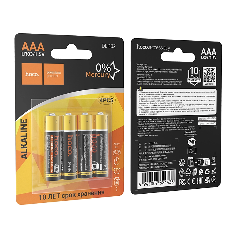 باتری نیم قلمی مدل DLR02 AAA LR03 برند هوکو (4PCS)