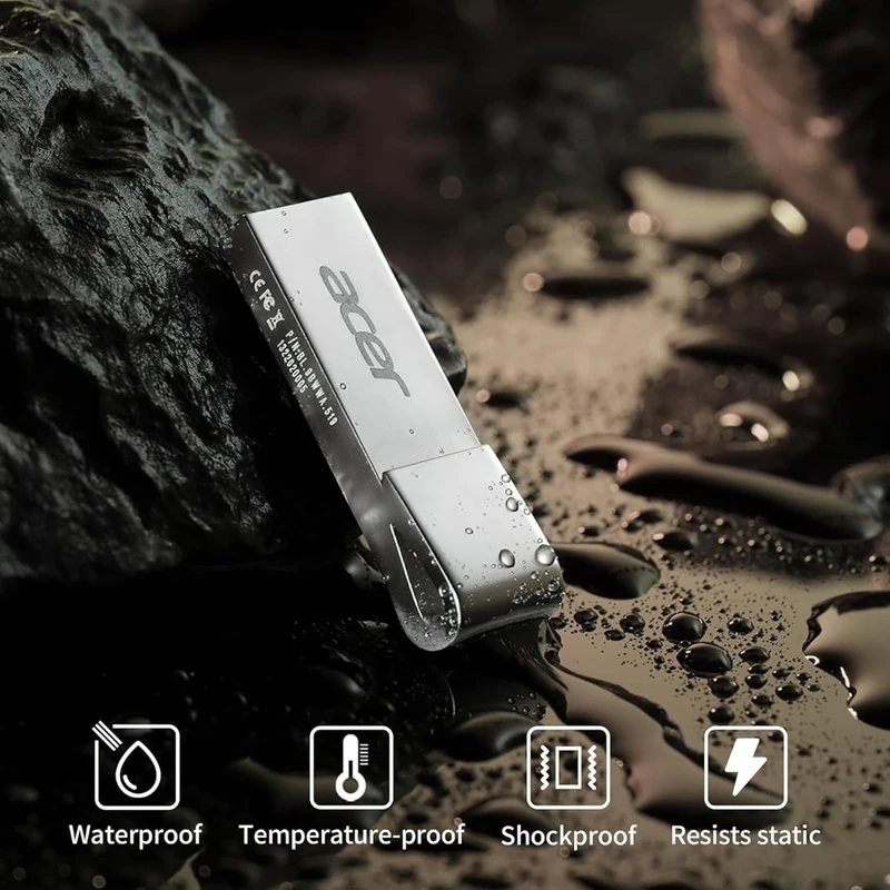 درایو فلش Acer UF300 32GB با رابط USB 3.2 Gen 1، راهکاری پیشرفته و بادوام برای ذخیرهسازی سریع و ایمن دادههای روزمره است که با سرعت خواندن تا ۱۰۰ مگابایت بر ثانیه، انتقال فایلهای حجیم مانند ویدیوهای HD، عکسهای باکیفیت یا اسناد کاری را در کسری از ثانیه ممکن میسازد و فضای ۳۲ گیگابایتی آن برای نگهداری صدها فایل چندرسانهای، بکآپ ضروری یا محتوای آموزشی کافی است. بدنه فلزی از آلیاژ روی با روکش نیکل و وزن سبک ۸.۲ گرم و طراحی ارگونومیک "دم نهنگ" منحنی (ابعاد ۳۹ × ۱۲ × ۴.۵–۷.۸ میلیمتر)، ظاهری شیک و حرفهای ایجاد کرده که در برابر ضربه، سایش، خراش، خوردگی، گردوغبار، گرما، الکتریسیته ساکن و شوک مقاوم است؛ فناوری بستهبندی UDP آن، مقاومت در برابر پاشش آب و غوطهوری کوتاهمدت در آب کمتر از ۱ متر را تضمین میکند و اتصال آسان بدون اصطکاک، تجربهای راحت از وصل و جدا کردن را فراهم میآورد. UF300 کاملاً با سیستمعاملهای ویندوز XP/7/8/10/11، مک OS 10.5+ و لینوکس و دستگاههایی مانند کامپیوتر، لپتاپ، تبلت، تلویزیون هوشمند، سیستم صوتی خودرو و کنسولهای بازی سازگار است و بدون نیاز به درایور یا منبع تغذیه اضافی، به صورت Plug & Play عمل میکند.