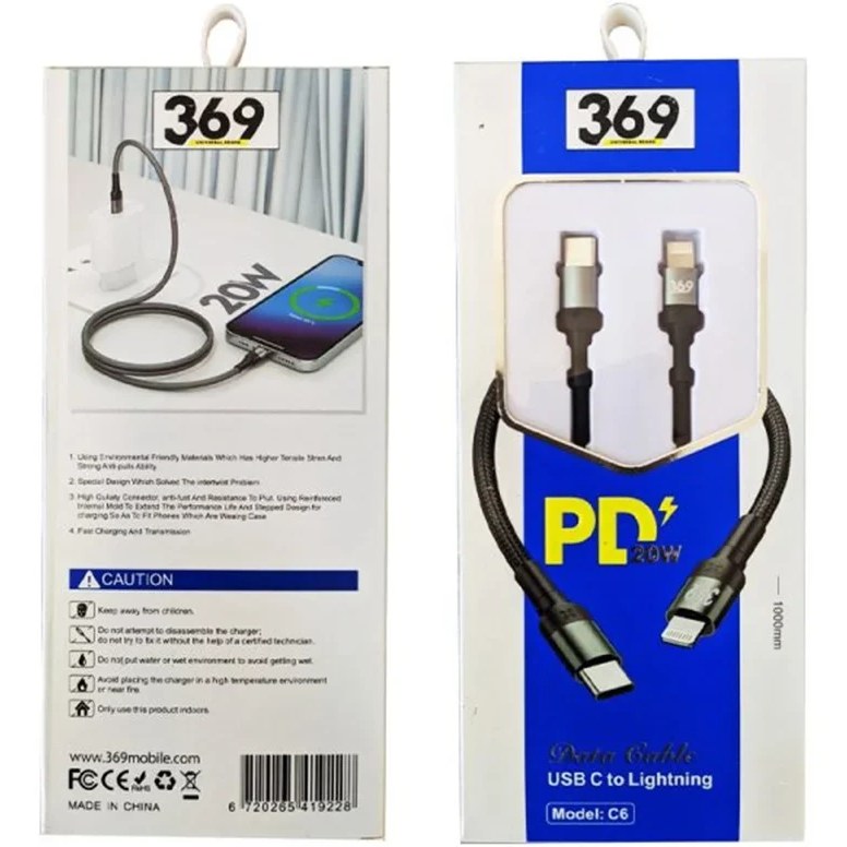 کابل شارژر 369 TYPE C به لایتنینگ مدل C3