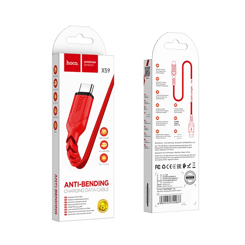 کابل شارژ USB به USB-C هوکو مدل X59 طول 1 متر